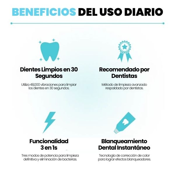 Cada diente experimenta 48,000 vibraciones por minuto, proporcionando una limpieza profunda y una sensación que nuestros clientes describen como un masaje dental... ¡pero es mucho más que eso!